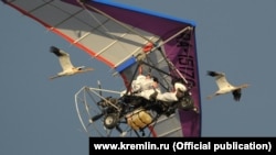 Пять лет назад президент России Владимир Путин по пути на саммит АТЭС сделал короткую остановку на Ямале, где пролетел на дельтаплане во главе стаи стерхов. Авиашоу называлось "Полет надежды". Пресс-секретарь президента тогда заявил, что именно Путин был инициатором программы по спасению птиц, а сам президент говорил, что доволен тем, как в стране развиваются проекты помощи исчезающим видам животных. Специалисты, работавшие над спасением стерхов, предполагали, что заинтересованность судьбой журавлей на самом высоком уровне обеспечит дальнейшее развитие проекта. Позднее президент сообщил, что РФ расширит программу сохранения вымирающих видов животных, в том числе мигрирующих видов птиц. Однако никакого продолжения акция со стерхами не получила. Уже несколько лет подаренный президентом дельтаплан, который должен сопровождать птиц к безопасным местам зимовки, не поднимается в воздух.