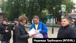 "Я выступаю за свободу, за Россию, за Россию без произвола, – заявил участник пикета. – Я хочу, чтобы Россия была правовым государством".