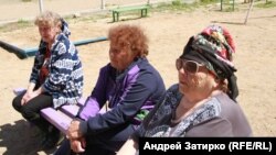 Три пенсионерки мирно устроились в теньке многоэтажки. От скуки и из любопытства они не смогли пропустить мимо прохожего с фотоаппаратом.