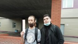 Двое молодых людей из Омска, Максим Таргариен и Игорь Пуненко, пришли к больнице, чтобы выразить поддержку Алексею Навальному. Они уверены, что оппозиционный политик "пострадал за правду".