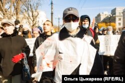 – Десятого числа нас избивали, бабушек, дедушек. Вот, при мне 80-летнюю бабушку тот самый Христинин, омоновец, ударил дважды. Все это видно было на видео, – рассказывает протестующая, которая пожелала остаться анонимной. – Нашей акцией мы хотим показать, что была пролита кровь. И мы этого не забудем. Еще раз на силовой разгон, конечно, решатся, если будет приказ из Москвы. Но Хабаровск подготовлен: если будет серьезнее, то это уже гражданская война. А пошло это все от президента нашего, которого мы не выбирали. Но на наш протест никакой ОМОН не повлияет. Люди нападать вот только не будут, а начнут защищать свою жизнь и свободу.