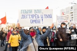 Галина имеет в виду историю, приключившуюся с журналистом Сергеем Плотниковым, которого в ночь на 16 октября неизвестные похитили и вывезли в лес. Сергей освещает протесты на ютьюб-канале RusNews. Он также пришел сегодня на акцию протеста. Сергей уверен, что похитили его силовики, но говорит, что его это не остановит.