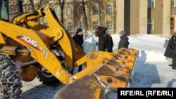 Буквально за 10 минут до начала на площадку, где организаторы устанавливали помост и аппаратуру, вдруг заехал снегопогрузчик, разгоняя уже собравшихся людей. Дорогу машине перегородил пожилой человек: "Ты кому угрожаешь? Пенсионеров пугаешь?!" Быстро соскочивший со своего места машинист двинулся ему навстречу, началась перебранка, после чего погрузчик все же уехал.